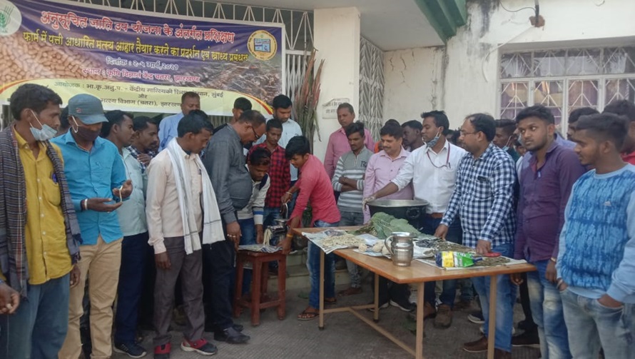 पत्ती चूर्ण आधारित फार्म निर्मित जलीय आहार तैयारी और फार्म पर आहार प्रबंधन के प्रदर्शन पर एससीएसपी प्रशिक्षण