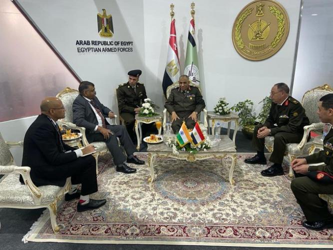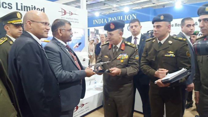 इजिप्त के सशस्त्र बलों के सशस्त्र बलों के चीफ ऑफ स्टाफ लेफ्टिनेंट जनरल ओसामा असकर को कैरो में चल रहे EDEX2023 के दौरान भारत पवेलियन के दौरे पर भारतीय रक्षा कंपनियों के उत्पादों के बारे में जानकारी दी गई।