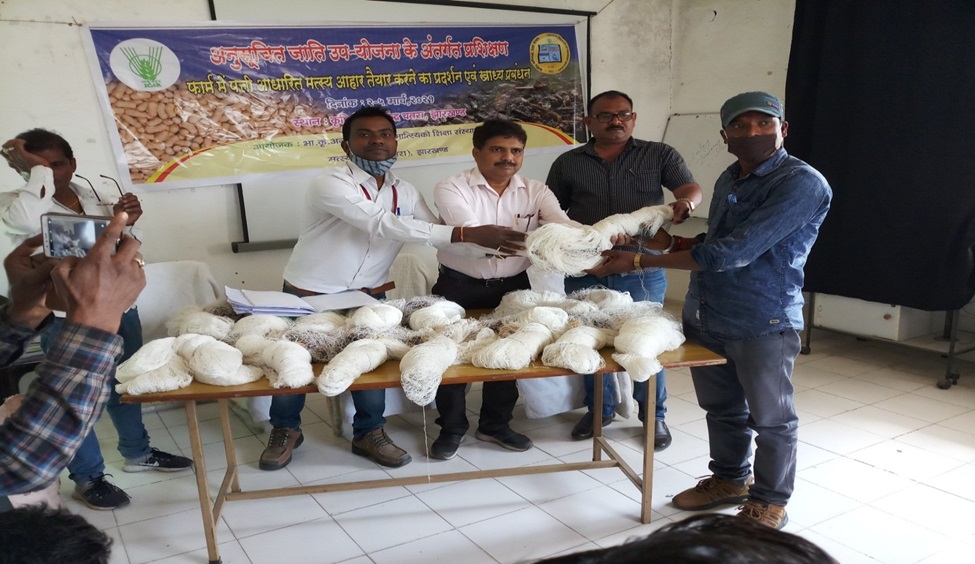 पत्ती चूर्ण आधारित फार्म निर्मित जलीय आहार तैयारी और फार्म पर आहार प्रबंधन के प्रदर्शन पर एससीएसपी प्रशिक्षण